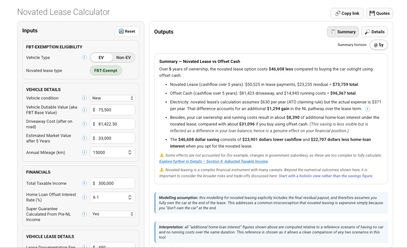 The web-based version is not an endpoint, but the latest iteration of an ongoing attempt to make novated leasing analysis more transparent and grounded in real financial outcomes.
